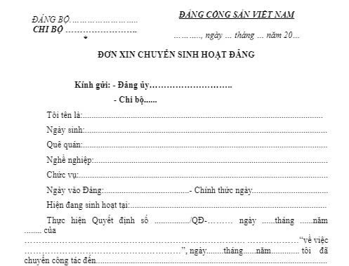 Mẫu đơn xin chuyển sinh hoạt đảng mới nhất 2025? Cách viết giấy chuyển sinh hoạt đảng? Đơn xin chuyển sinh hoạt Đảng file word?