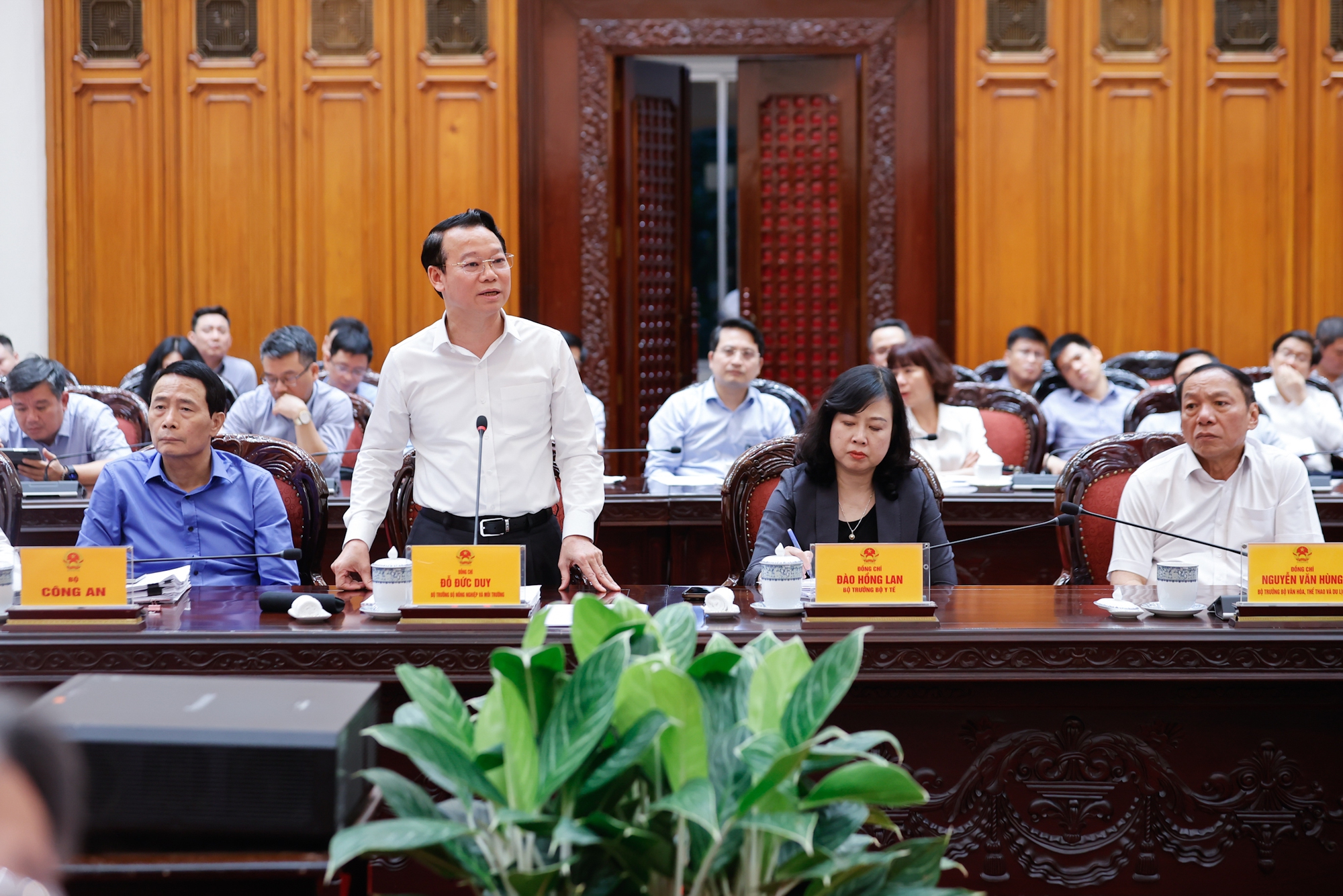 Các bộ trưởng, thủ trưởng cơ quan ngang bộ dự và phát biểu tại phiên họp - Ảnh: VGP/Nhật Bắc