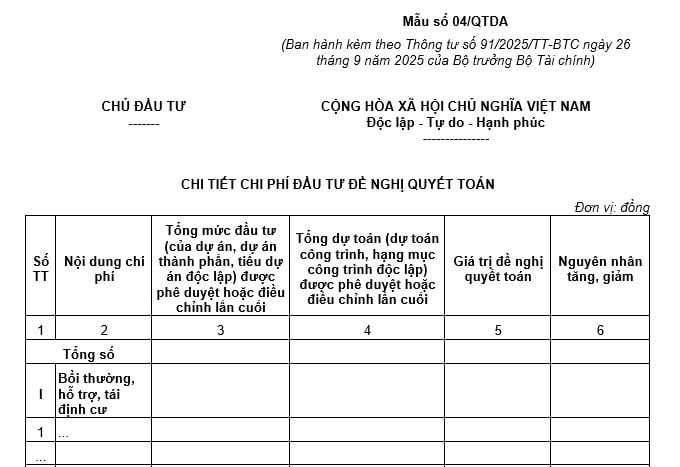 Tải về Mẫu 04 QTDA Biểu mẫu Thông tư 91 2025 TT BTC