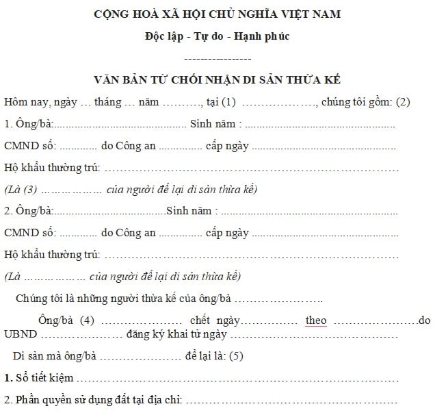 Vậy mẫu đơn từ chối thừa kế đất đai mới nhất hiện nay là gì và cách viết như thế nào cho hợp lệ?