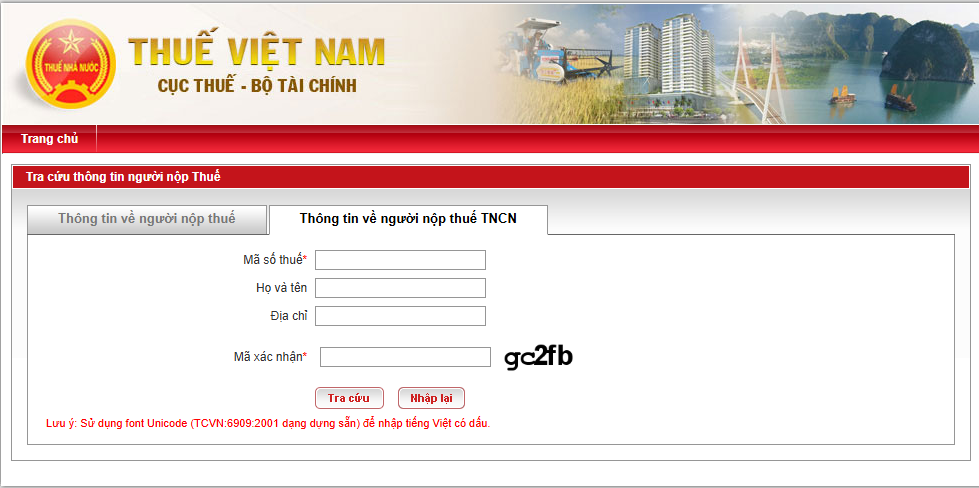 Hệ thống sẽ yêu cầu NNT nhập một số dữ liệu cần thiết. Nếu tra cứu thông tin cá nhân, chọn mục “Tra cứu thông tin người nộp thuế TNCN” hoặc truy cập liên kết: https://tracuunnt.gdt.gov.vn/tcnnt/mstcn.jsp