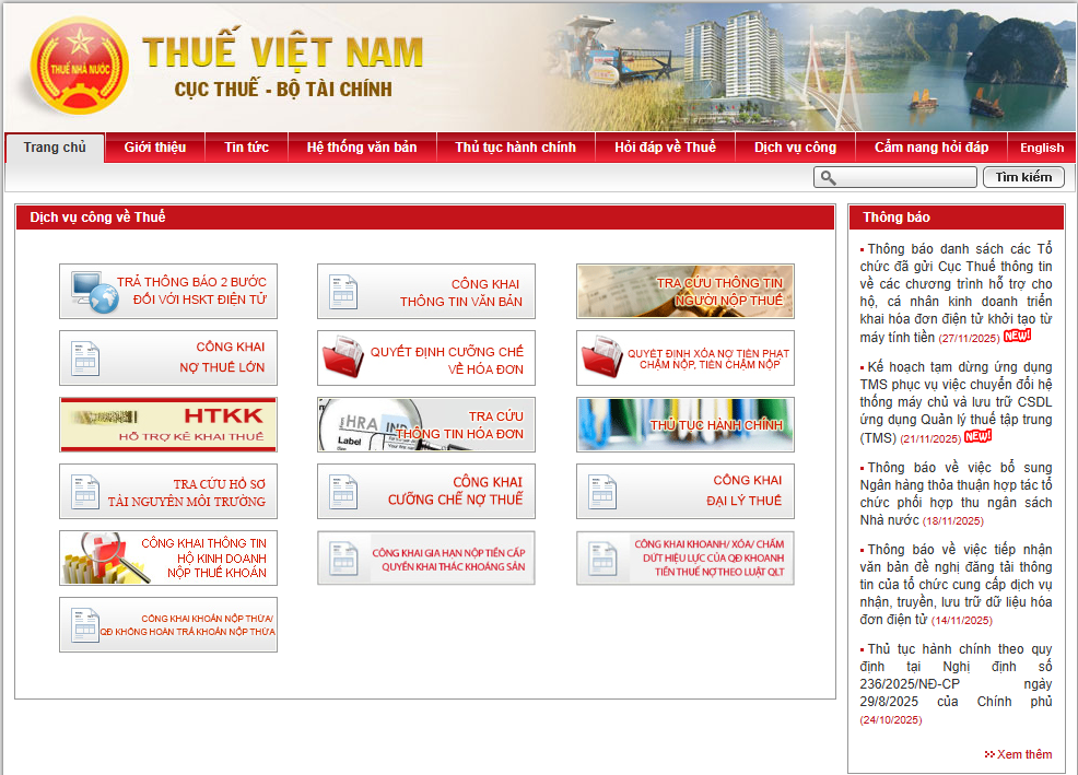 Cổng Dịch vụ công Quốc gia là nền tảng tập trung các dịch vụ hành chính trực tuyến, cho phép NNT thực hiện tra cứu và thanh toán các nghĩa vụ tài chính như thuế và lệ phí một cách nhanh chóng.