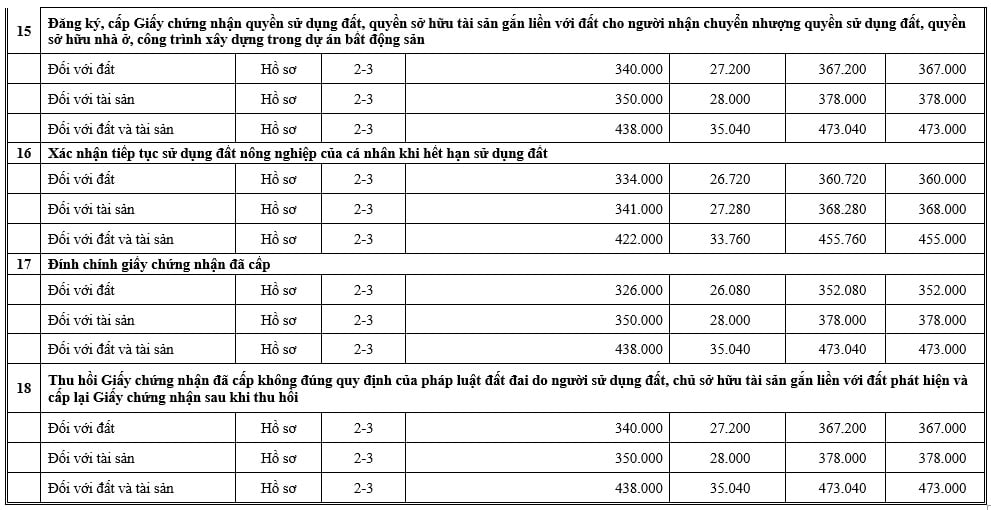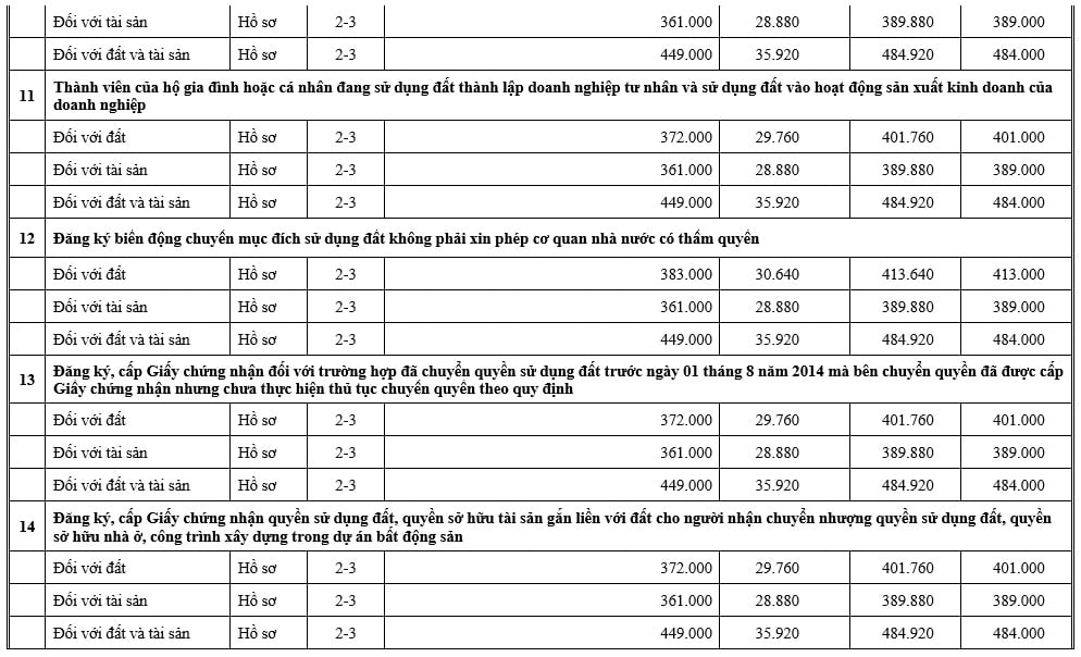 - In bảng giá dịch vụ niêm yết tại sảnh các địa điểm tiếp nhận thủ tục hành chính và tại trụ sở làm việc của Văn phòng Đăng ký đất đai/ Chi nhánh Văn phòng đăng ký đất đai.