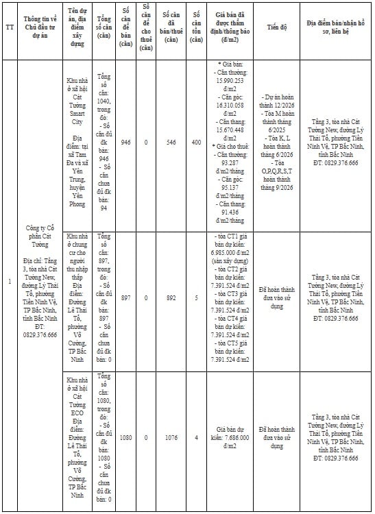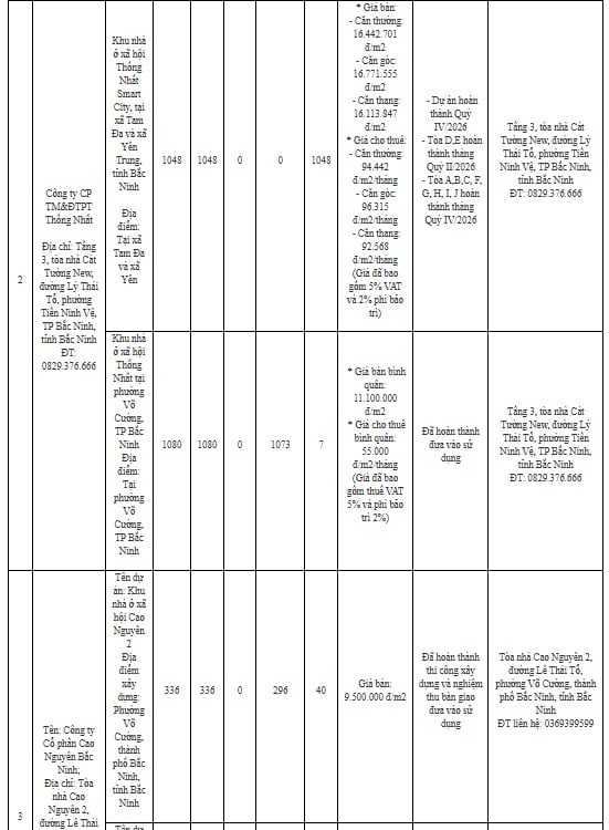 Vừa qua, Sở Xây dựng tỉnh Bắc Ninh đã công bố thông tin 27 dự án nhà ở xã hội tại Bắc Ninh đủ điều kiện mở bán tháng 11/2025 bao gồm giá bán, giá thuê và địa chỉ nhận hồ sơ để người dân biết và đăng ký nộp hồ sơ.